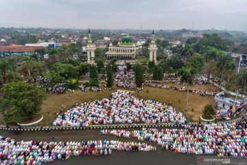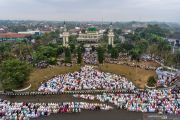 Berlatar belakang eskavator hingga kapal, shalat Idul Adha di sejumlah daerah berlangsung khidmat
