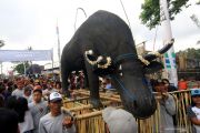 Kostum berbahan dasar bambu diperagakan dalam Bamboo Festival di Banyuwangi
