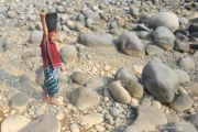 Sumur mengering, warga mencuci dan mandi di sungai