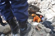 Petugas SAR gabungan evakuasi korban kecelakaan helikoper di Tanah Bumbu