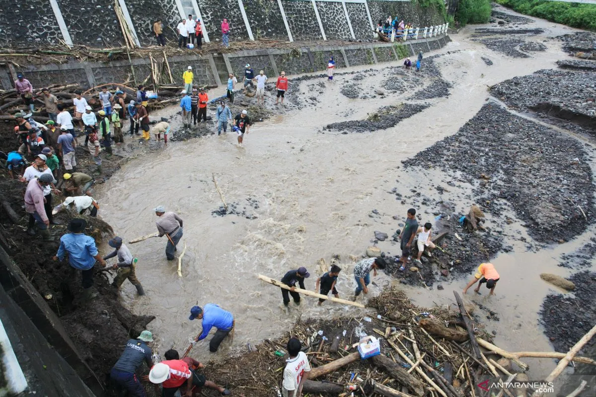 Pembersihan material pascabanjir bandang di Demak