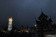 Kawasan jam gadang disemprot disinfektan