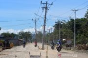 Tiang listrik di tengah jalan