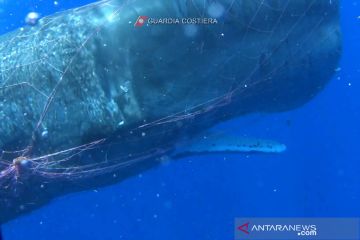 Seekor paus sperma terdampar di Rote