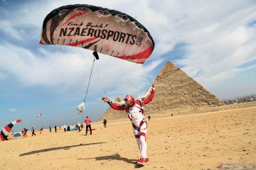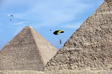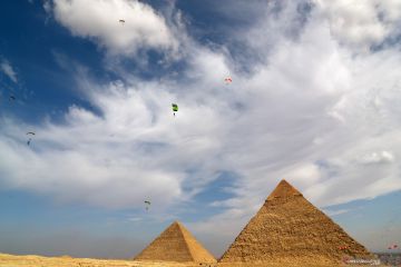 Aksi terjun payung di atas piramida Giza Mesir