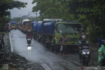 Sungai Pengabuan meluap putus akses jalan nasional antara Jambi-Riau
