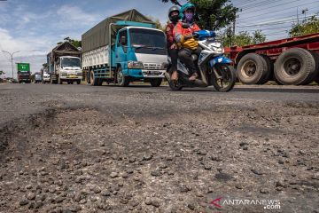 Jalan raya di jalur Kudus - Purwodadi rusak dan berlubang