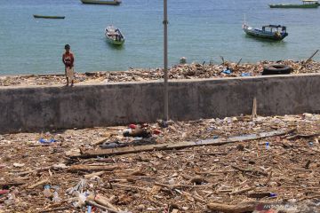 Sungai dan permukiman Aek Garoga dipenuhi kayu gelondongan pascabanjir bandang di Tapanuli Selatan