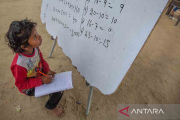 Anak-anak korban letusan Gunung Semeru belajar di tenda darurat