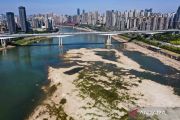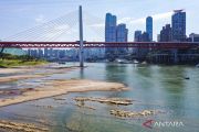 Sungai Jialing menyusut dampak dari kekeringan di China