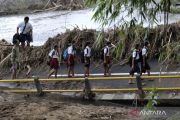 Jembatan Juli putus pascabanjir, warga terpaksa gunakan kabel baja seberangi sungai di Aceh