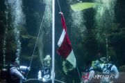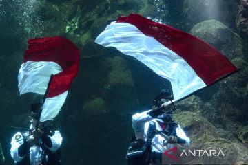 Sambut HUT ke-80 RI, perenang Makassar beratraksi dengan jeriken merah putih di tengah laut
