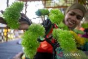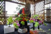 An officer from the Waters Garbage Treatment Unit of Gambir subdistrict created plastic decorative plants in Jakarta on Friday (July 12, 2024). The materials of the ornamental plants are plastic waste gathered from a river. ANTARA FOTO/Erlangga Bregas Prakoso/foc.