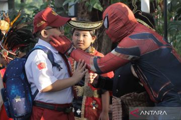Badut bantu edukasi protokol kesehatan kepada murid di sekolah
