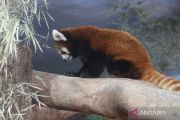 Red panda (Ailurus fulgens styani) is in a special air-conditioned enclosure at Batu Secret Zoo, Jatim Park II, Batu City, East Java, Thursday (August 15, 2024). The two-year-old red panda named Kaito is moved from Tama Zoological Park in Japan as a conservation effort and to add to animal collection at Jatim Park II. ANTARA FOTO/Ari Bowo Sucipto/nym.