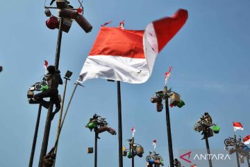 Semarak lomba panjat pinang di hari Kemerdekaan RI