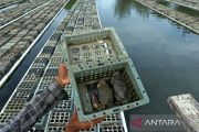 Keramba jaring apung untuk budi daya ikan kerapu di Pangandaran