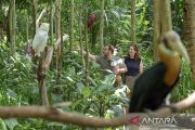 Some tourists feed the Yellow-crested Cockatoo (cacatua sulphurea) in Lombok Wildlife Park in Sigar Penjalin Village, Tanjung sub-district, Tanjung, North Lombok, West Nusa Tenggara, Sunday (November 3, 2024). Lombok Wildlife Park is located in the area of four hectares that offers open natural tours, with a collection of 195 animals and 50 different species from various countries. ANTARA FOTO/Ahmad Subaidi/foc/Y012