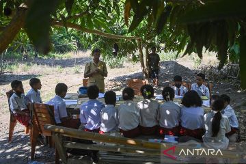 Siswa penyintas bencana erupsi Gunung Lewotobi Laki-laki masih belajar di ruangan sementara