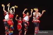 Artists from Yunnan Province, China, perform typical Chinese dancesin Nusa Dua, Badung, Bali, Sunday (January 19, 2025). The event, which displays various Chinese and Indonesian arts and culture performances, is held to welcome the Lunar New Year as well as a form of cultural acculturation between the two nations. ANTARA FOTO/Fikri Yusuf/Spt/Y012