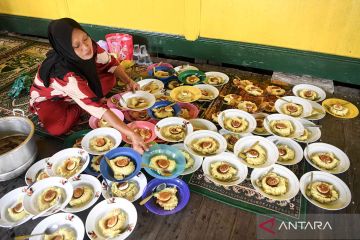 Mosque officials serve Bubur Peca, a traditional rice porridge from Samarinda, for breaking the fast at Shiratal Mustaqiem Mosque in Samarinda Seberang, Samarinda, East Kalimantan, Indonesia, Saturday (Feb. 21, 2026). At least 300 portions are distributed daily during Ramadan to preserve the traditional dish of Kampung Masjid, a nationally recognized intangible cultural heritage passed down for around 100 years. ANTARA FOTO/M Risyal Hidayat/YU/M052