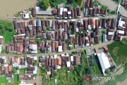 Aerial view of homes submerged by floods in Kedungringin Village, Beji, Pasuruan, East Java, Wednesday (March 25, 2026). Heavy rainfall over the past few days triggers flooding, affecting hundreds of houses. ANTARA FOTO/Umarul Faruq/tom/M052