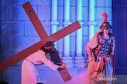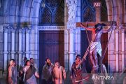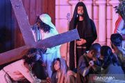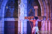 Catholic worshippers enact the Stations of the Cross during Good Friday observances at Jakarta Cathedral in Jakarta on Friday (April 3, 2026). The ritual commemorates the crucifixion and death of Jesus Christ. ANTARA FOTO/Fauzan/wsj/M052