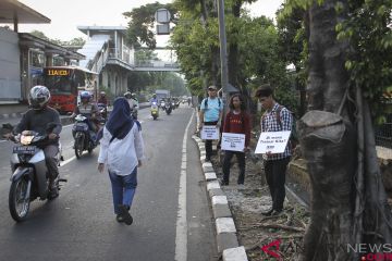 Aksi warga menghalau pengendara sepeda motor naik di trotoar