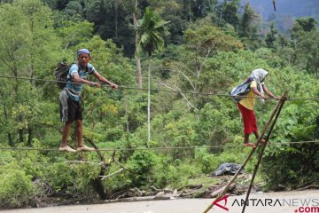 Warga Aceh Barat gunakan kabel listrik sebagai jembatan tali penghubung antardesa