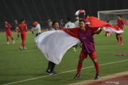Merah putih raksasa berkibar di Banjir Kanal Barat