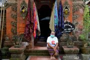 A traditional craft vendor in the Tenganan Pegringsingan tourism village, Karangasem District, Bali waits for tourists on Sept 24, 2021. The village has been awarded as one of 50 best tourism villages at the Indonesia Tourism Village Awards (ADWI) 2021. ANTARA FOTO/Fikri Yusuf/aww/bp/as.
